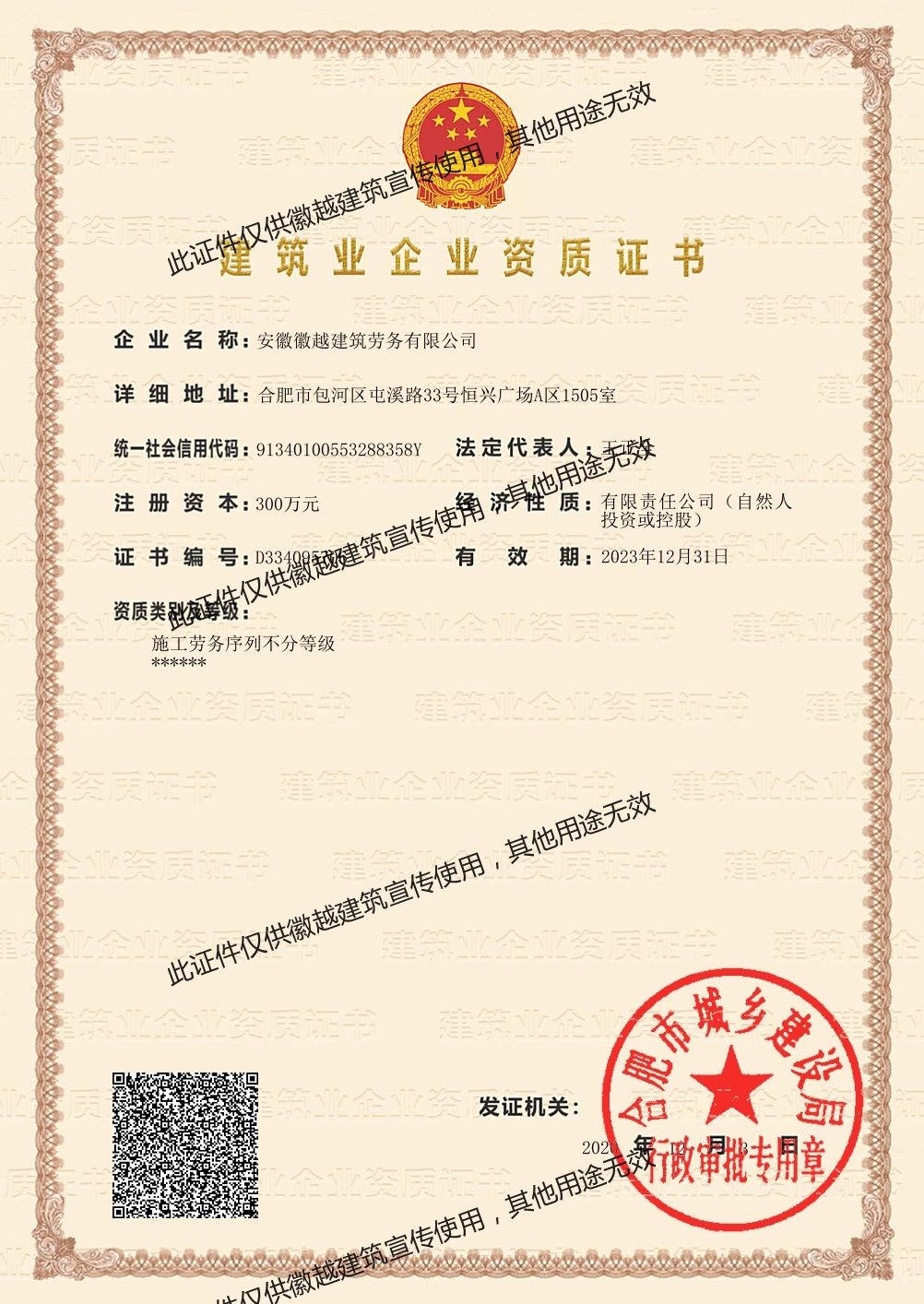 ·公司名稱:安徽徽越建筑勞務(wù)有限公司